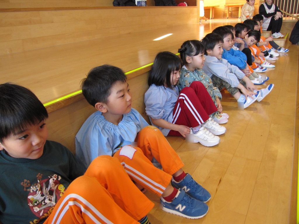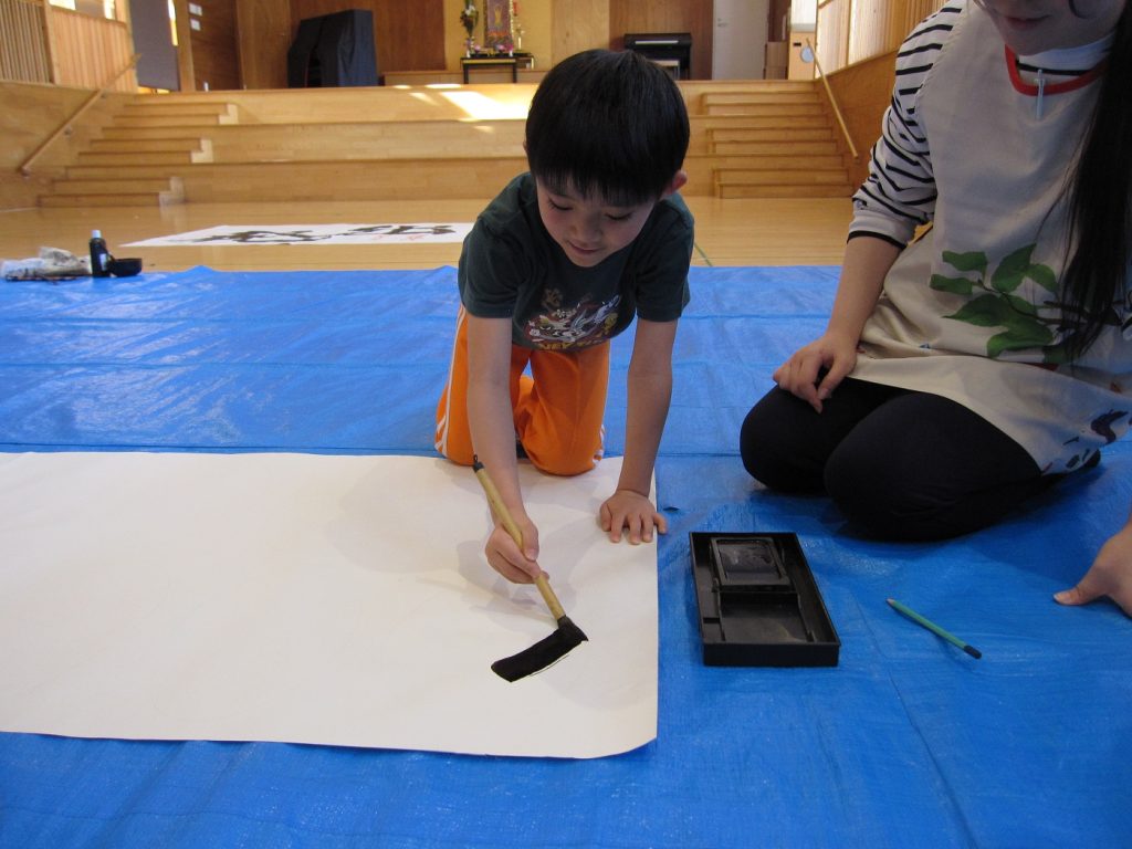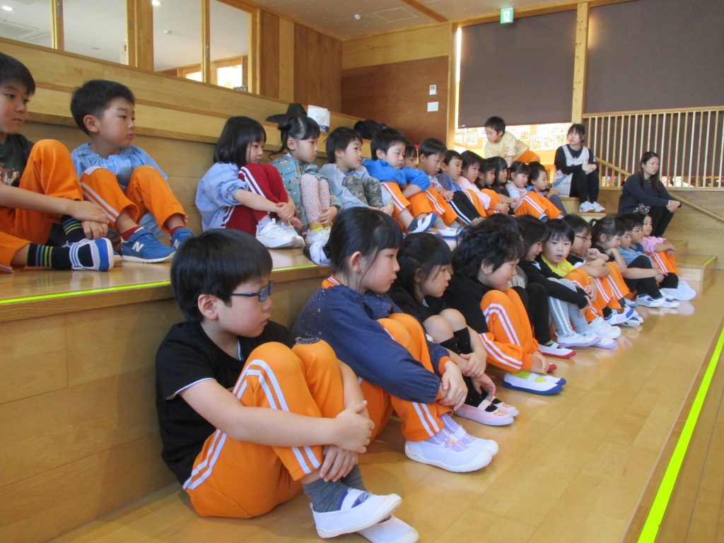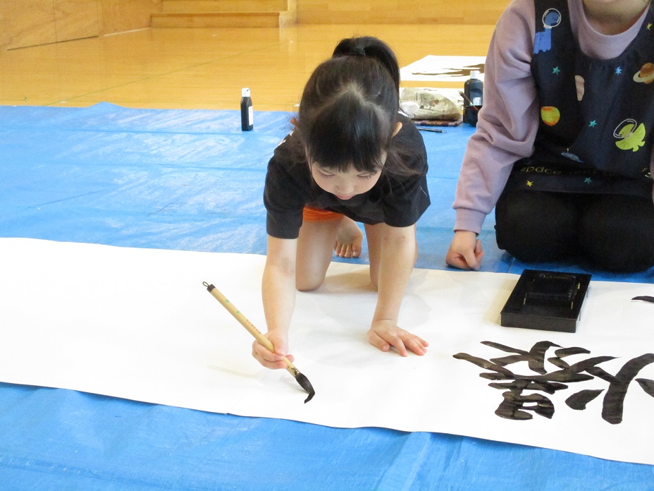 大きい筆で書くさき先生を真剣に見ていた子どもたちです✨「すご~い」や「わ~」と喜んでいた子どもたちでしたよ😊