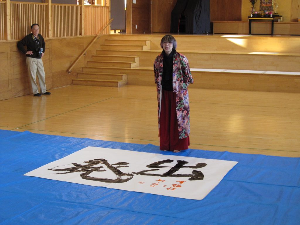 はじめに、年長さんのためにさき先生が「出発」という文字を書いてくれました!