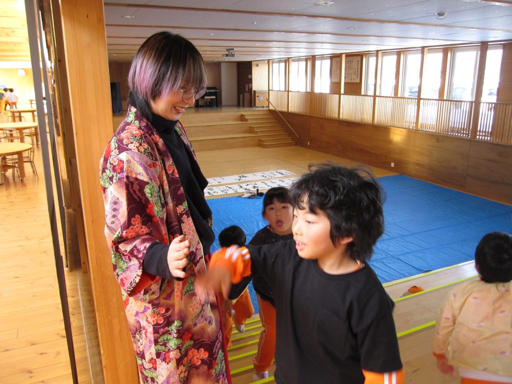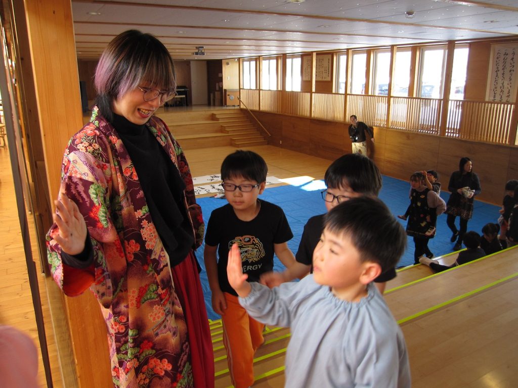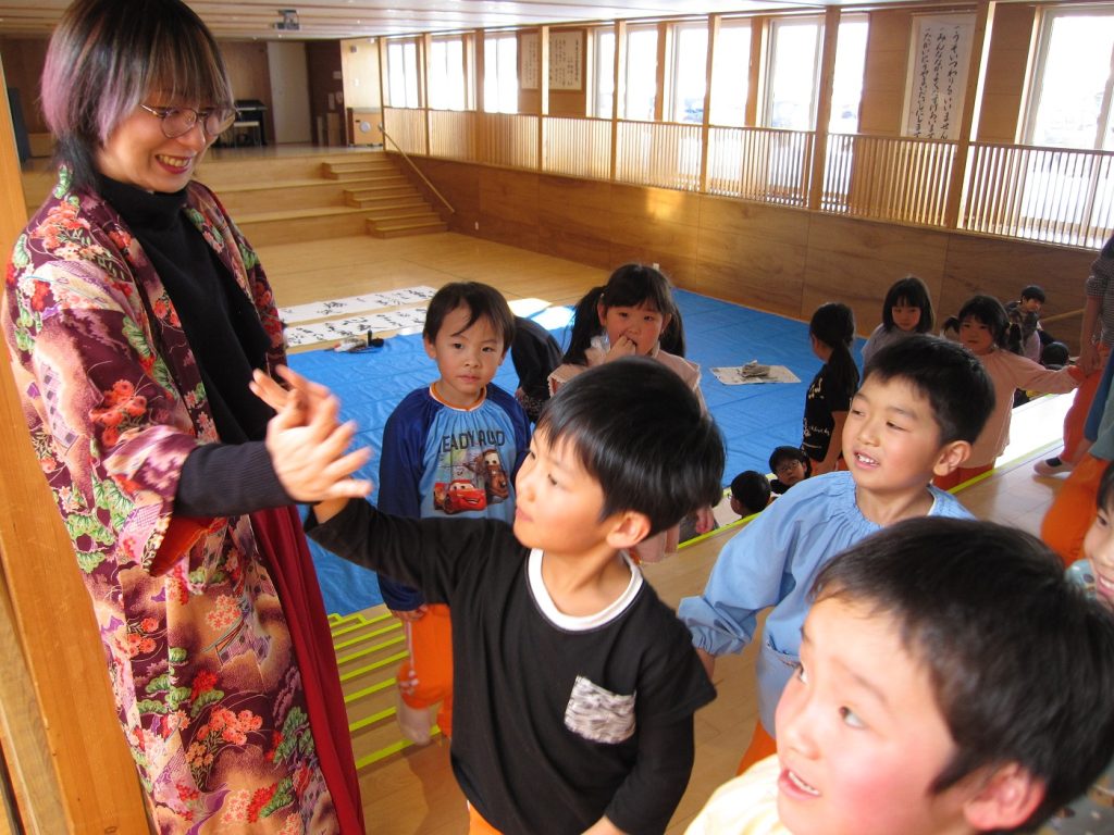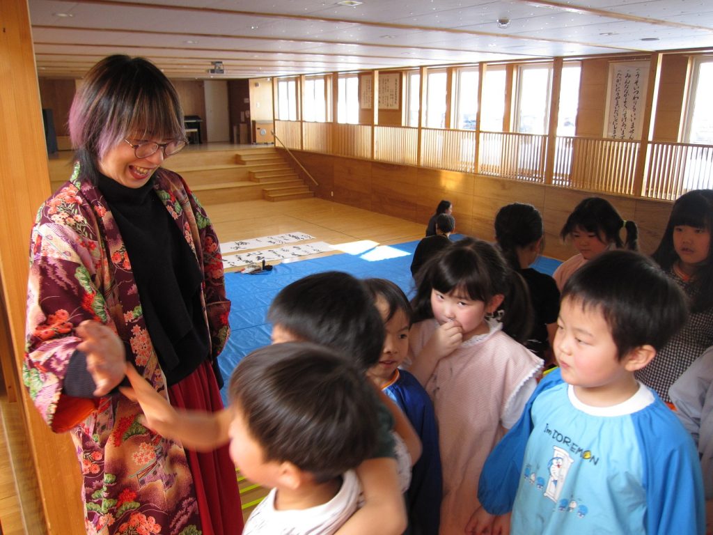 最後に、さき先生とハイタッチをして習字を終えました!