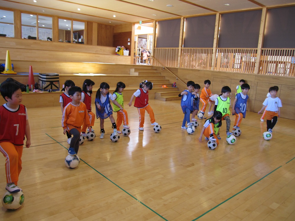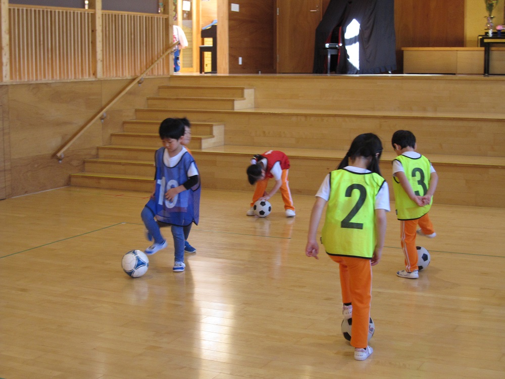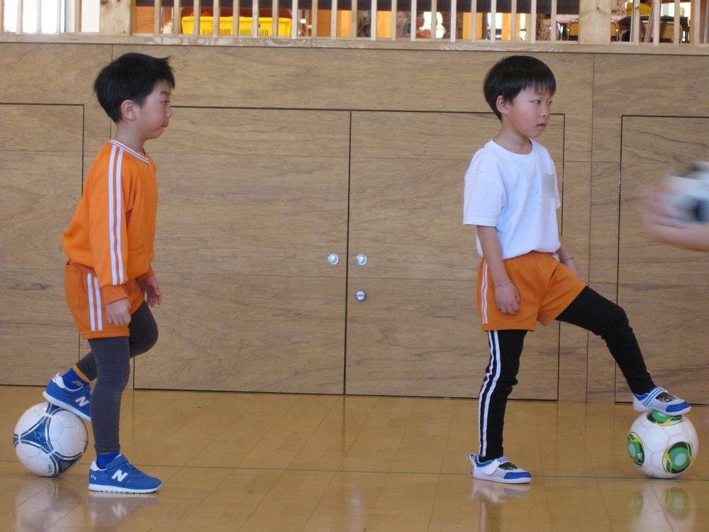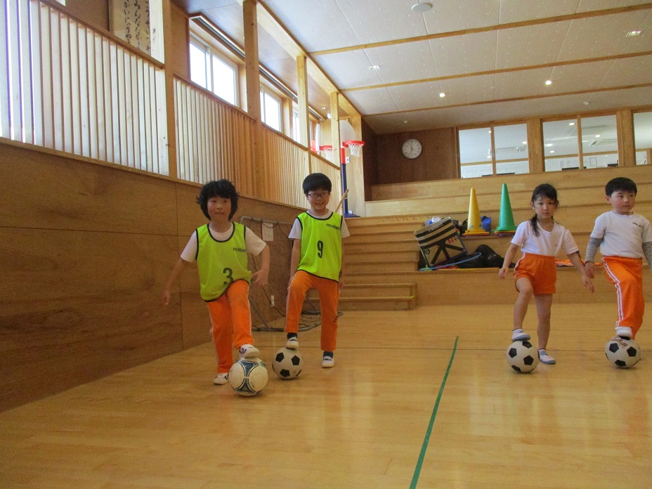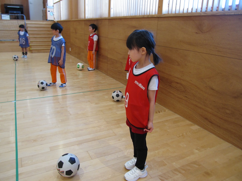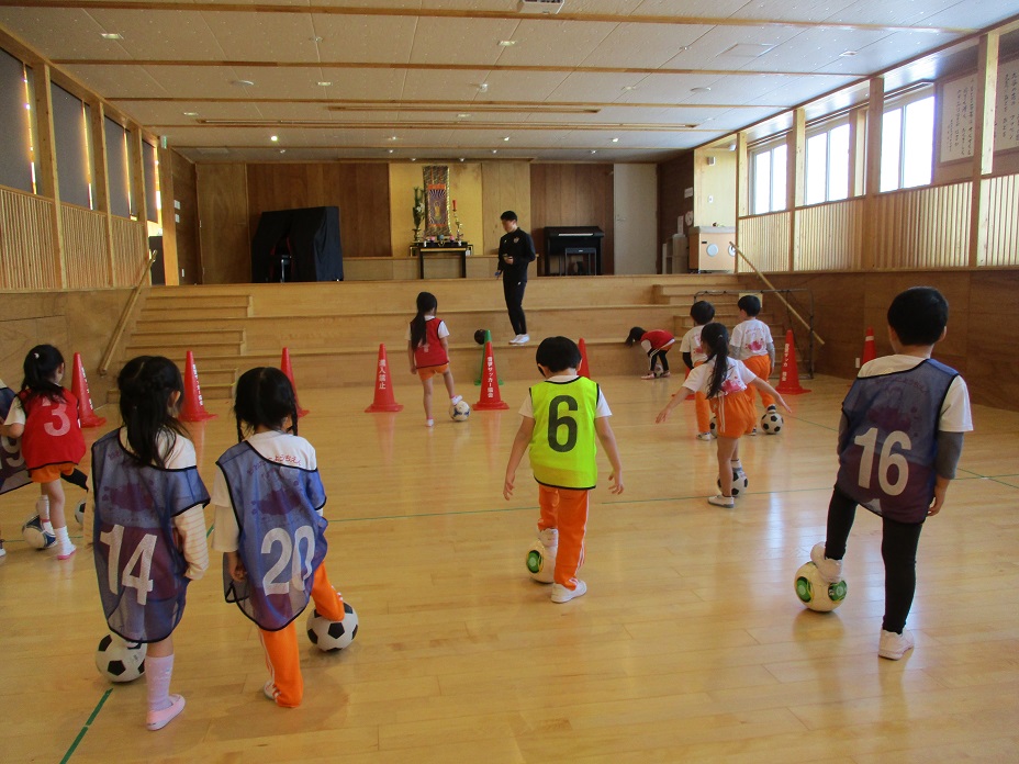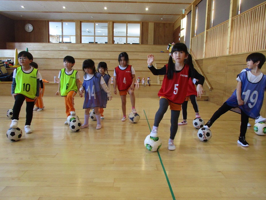 その後は、一人一つのボールをもって、足でボールを止めたり、側面で蹴ったり、ドリブルやリフティングに挑戦してみました✨