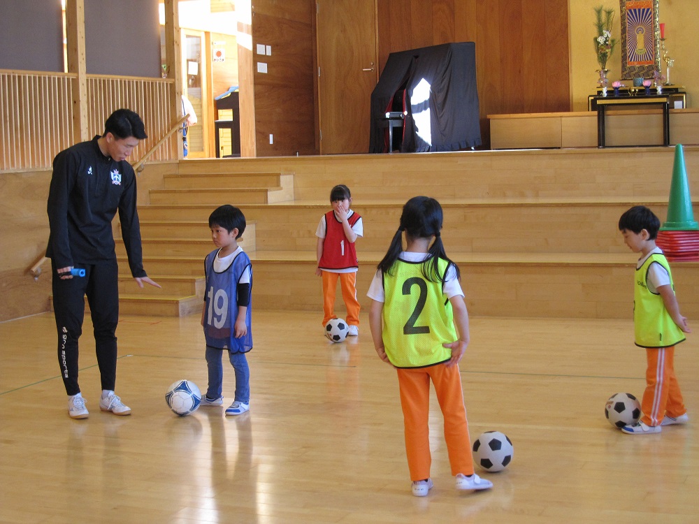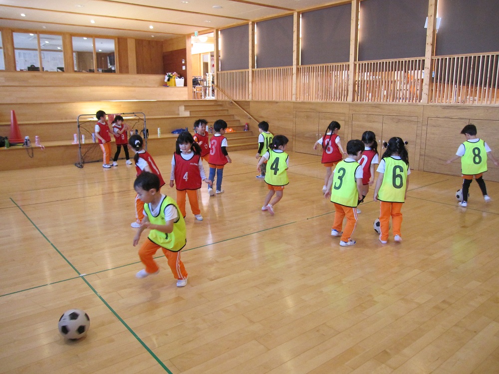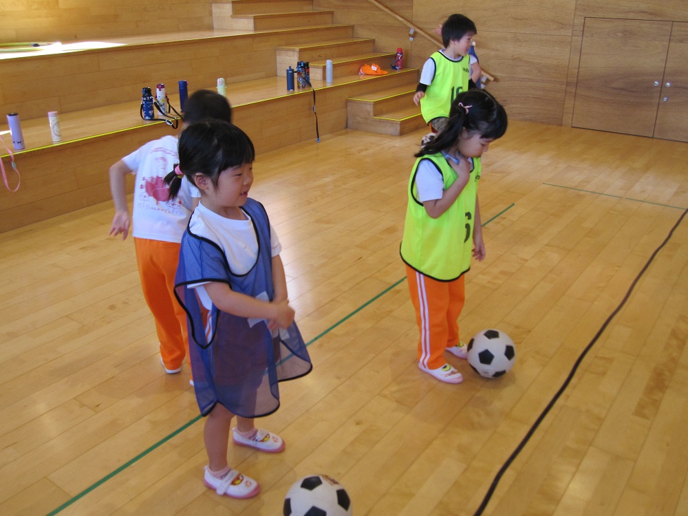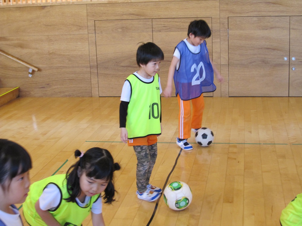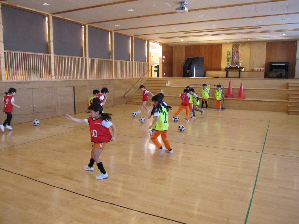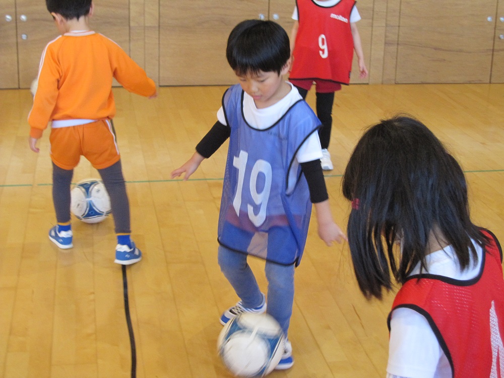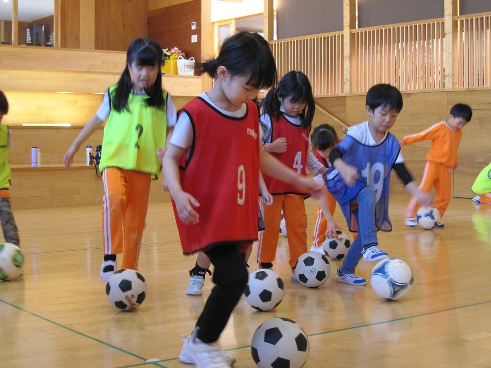 その後は、一人一つのボールをもって、足でボールを止めたり、側面で蹴ったり、ドリブルやリフティングに挑戦してみました✨