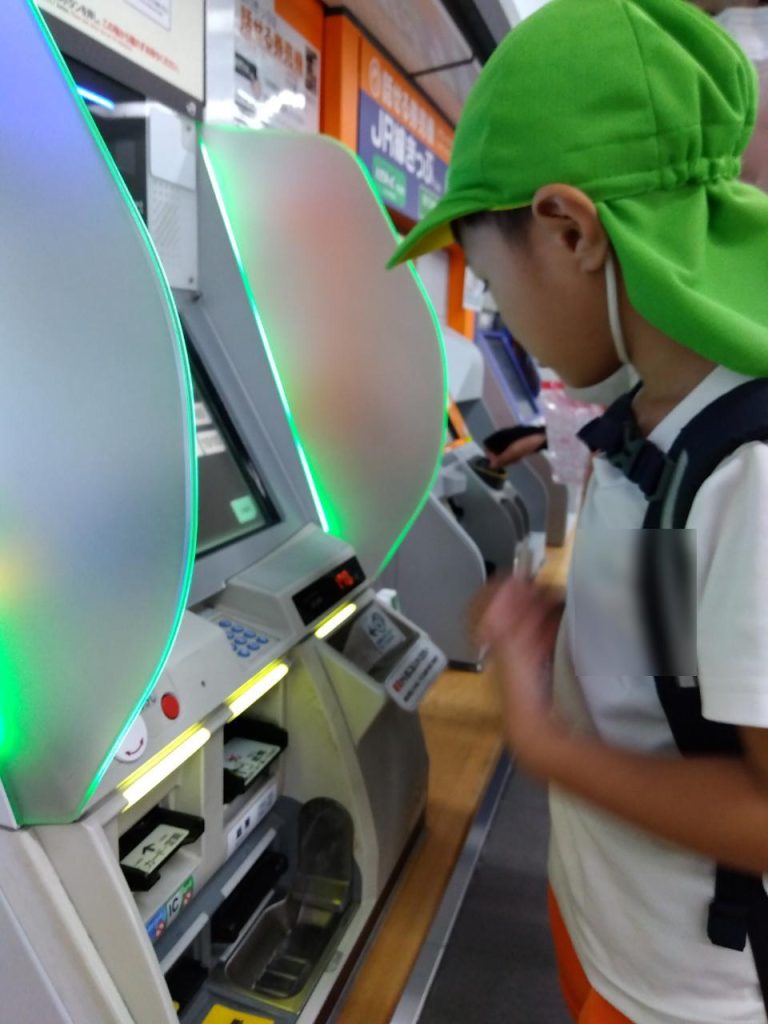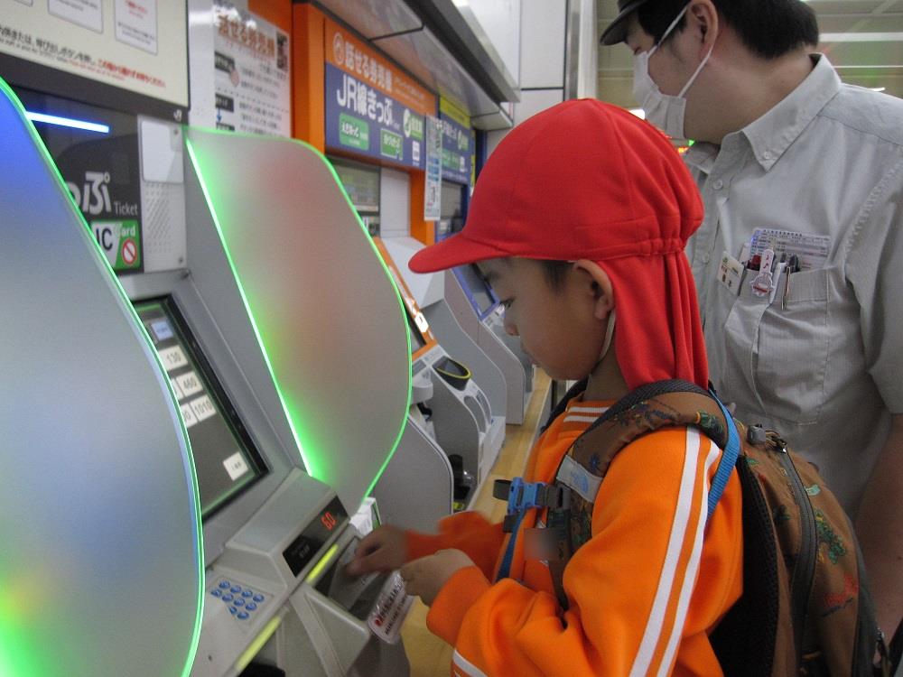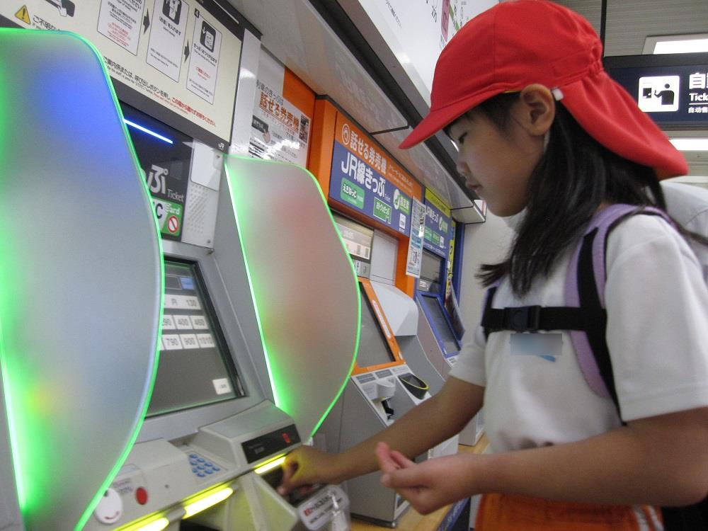 はじめに、駅員さんから切符の買い方を教えてもらい、一人ずつお金を入れて切符を購入しました!