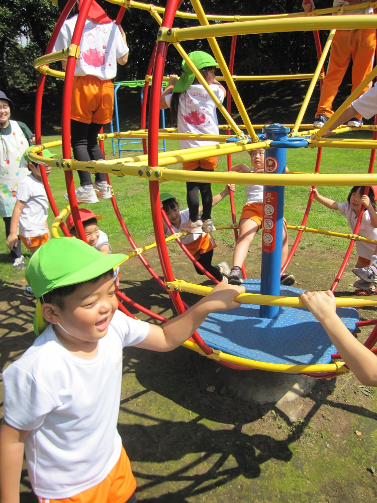 公園についたらさっそく遊びます!!いろいろな遊具に大興奮の年長さんでした(^^)💛