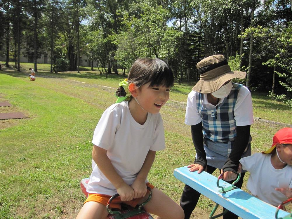 お弁当を食べて元気復活!恐竜の遊具やおもしろいブランコ、虫探し…などなど余すことなく芽室公園を楽しむことができました✨
