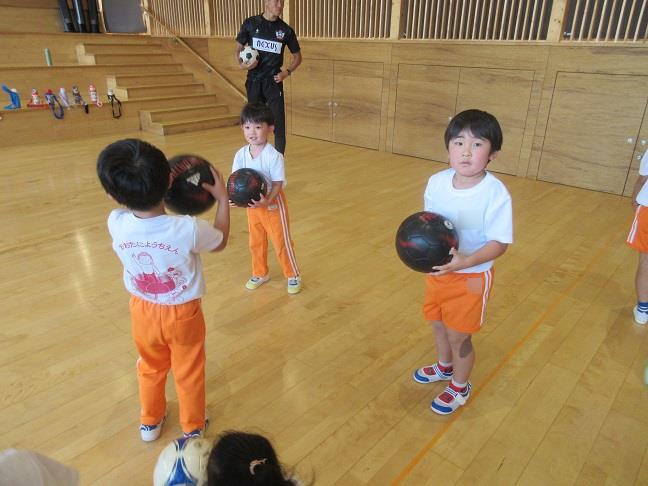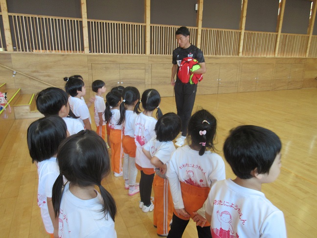 10月7日(火)、「音更町役場スポーツ課(地域おこし協力隊)十勝スカイアース所属 佐藤 友(さとう ゆう)コーチに来園にして頂き、年中2回目の運動教室を行いました✨