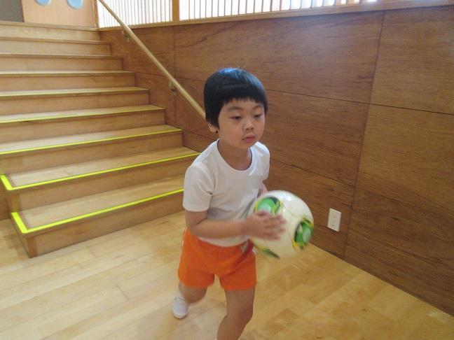 次にボールを使用し、『ボールを上に投げキャッチする』・『ボールの上に片足ずつ置く』・『ボールを上に投げ、足で止める』などの運動を行いました✨