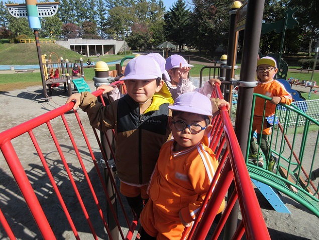 10月15日(水)、バスに乗って帯広にある「緑ヶ丘公園」まで園外保育に行って来ました😄 バスに乗ってお出かけが大好きな子ども達はとても楽しみにしていましたよ🎵