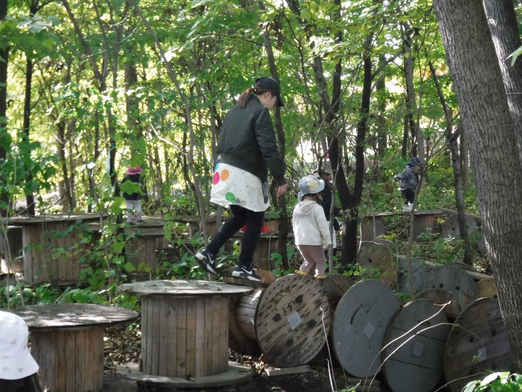 短い時間ではありましたが、一緒に森のドラム迷路を渡ったり、砂場や遊具で遊びましたよ!