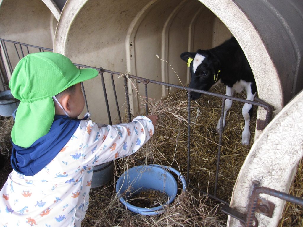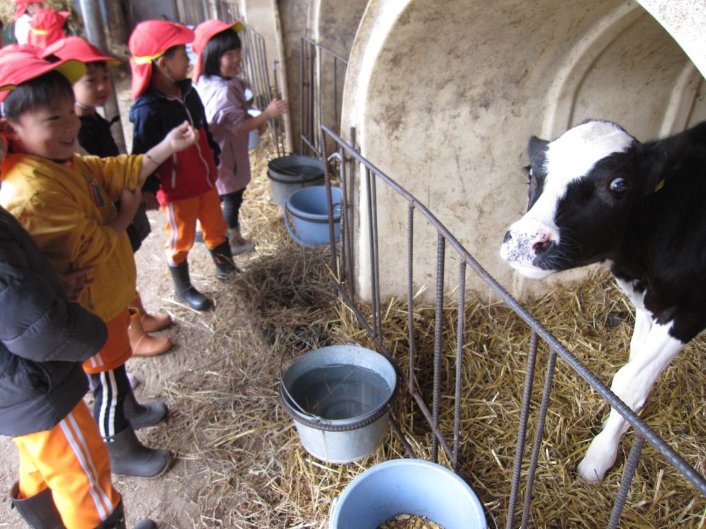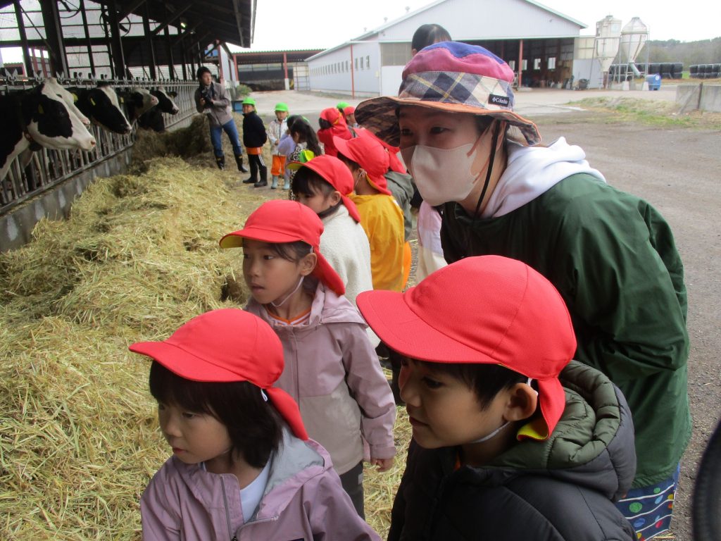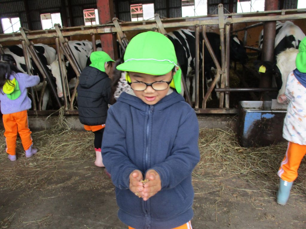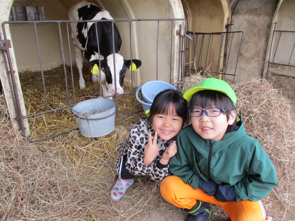 なんと…!お腹に赤ちゃんのいる牛も見てきました!「もぉ~🐄」という大きな鳴き声に少し驚いていましたが、「元気な赤ちゃん産んでね💕」と優しい年長さんでしたよ。
