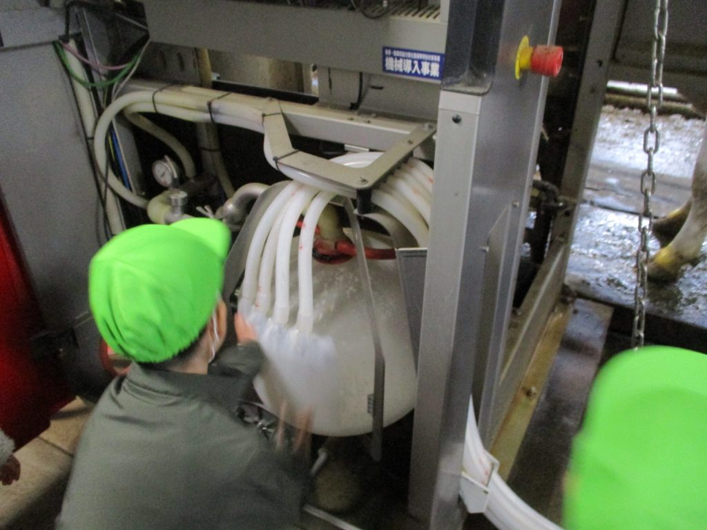 そして、搾乳機も見せていただきました~‼「温かい~」や「すごい」と大興奮でしたよ😊