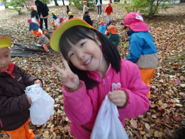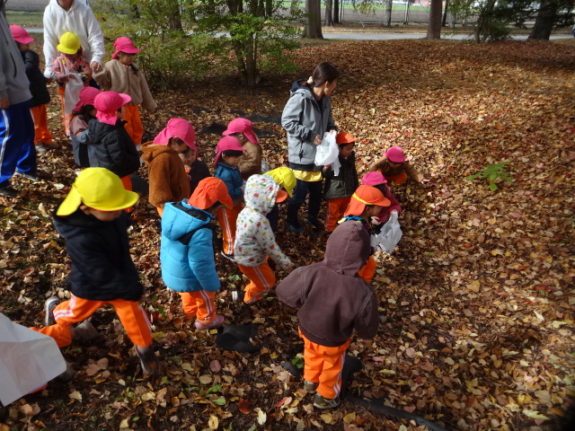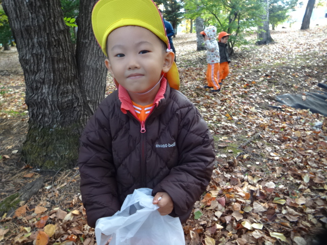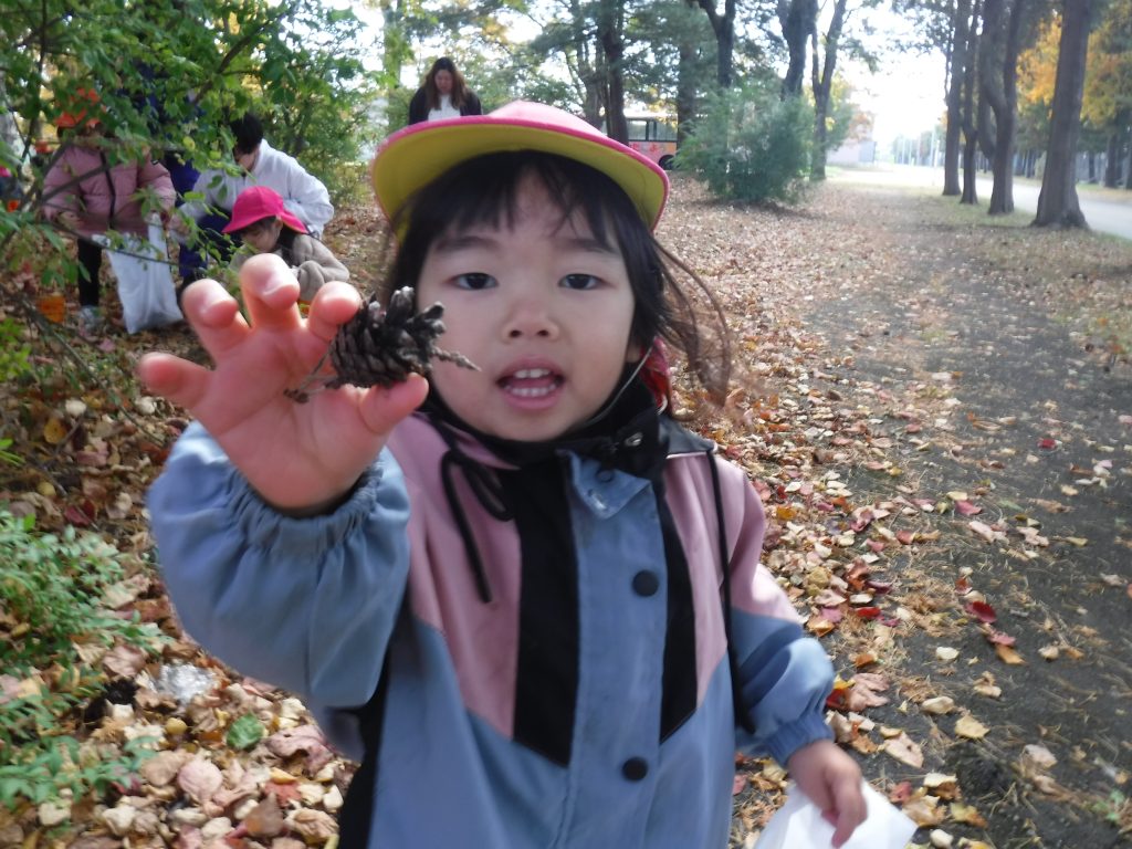 落ち葉や松ぼっくりなどもたくさん見つけて、袋にたくさん詰め込んで