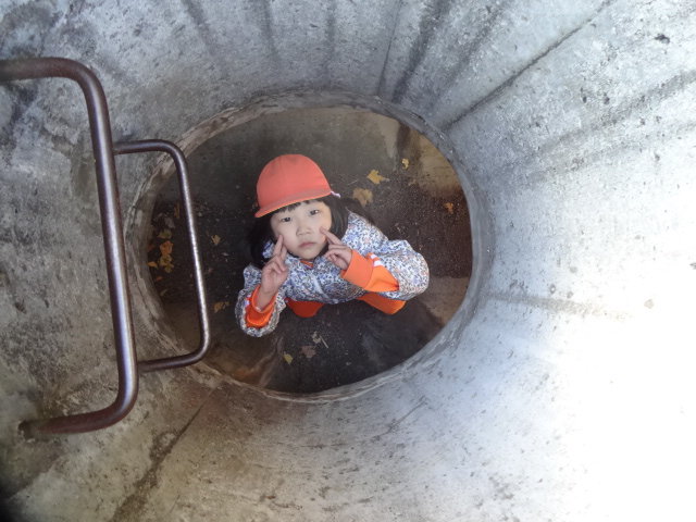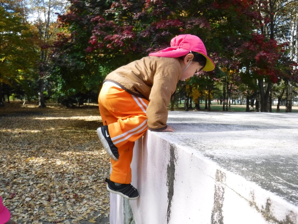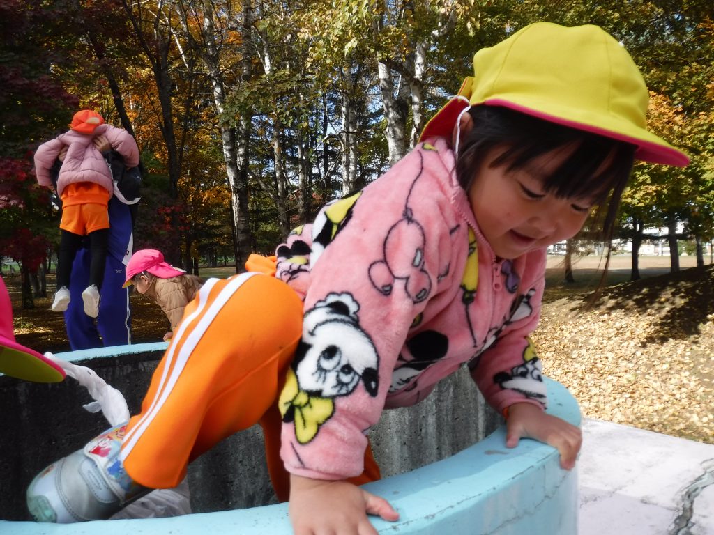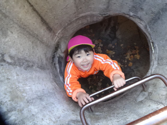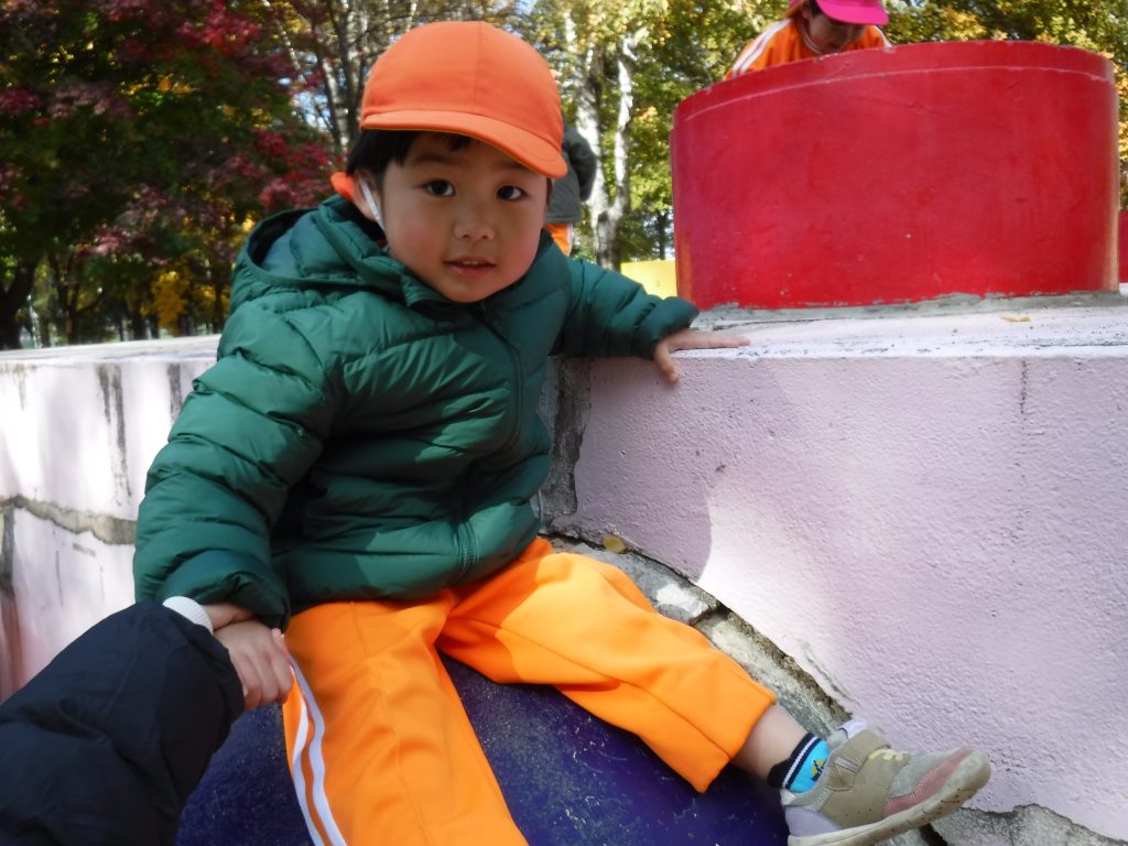 高いところもへっちゃら!どんどん土管の遊具を登っていきます⭐