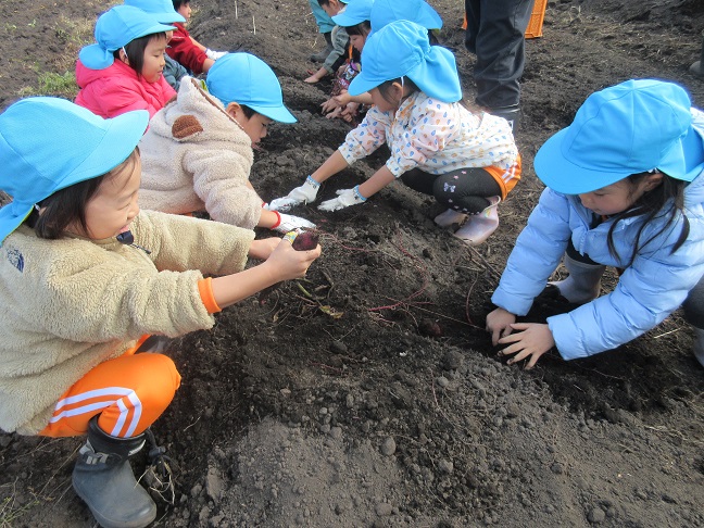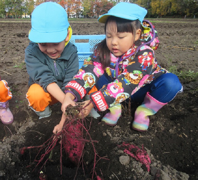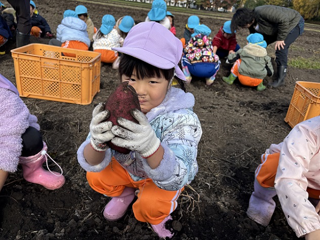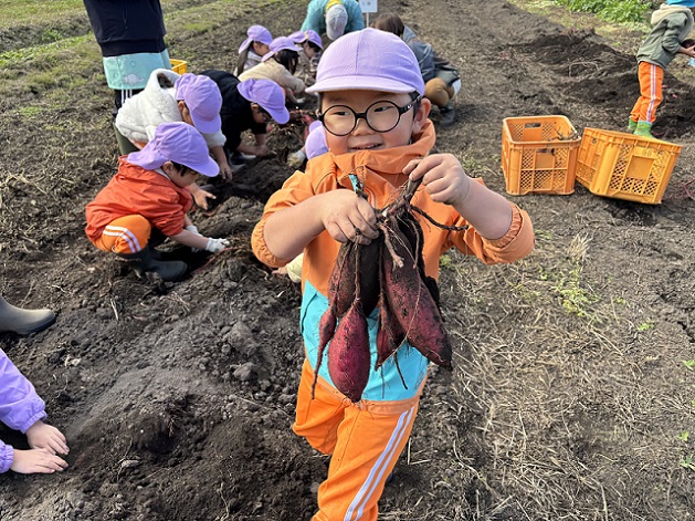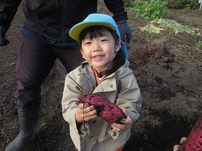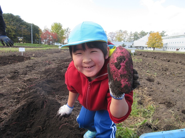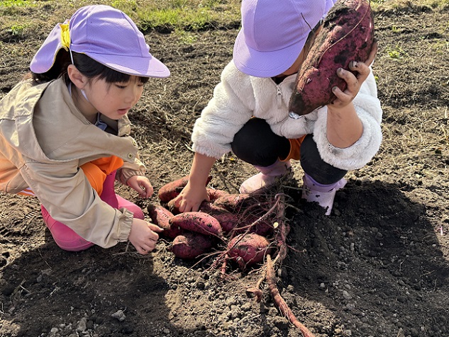 じゃがいもと違って、土の奥深くまで芋があり、みんな掘り出すのに一苦労していましたが、お友だちと協力して、さつまいもを沢山掘り出す事が出来ました(*^^*)