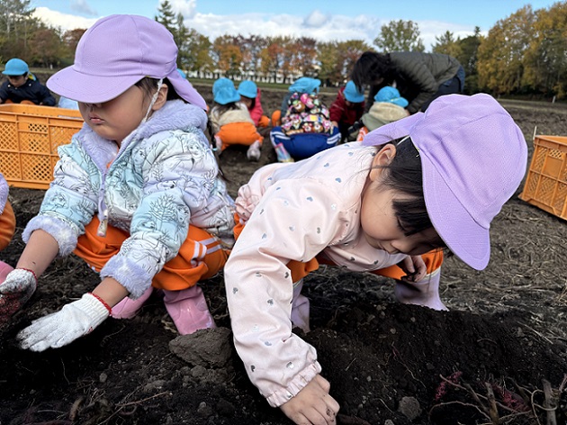 10月23日(木)、ふれあい農園さんに植えていたさつまいもを、年中さんが幼稚園代表として掘りに行ってきました😊