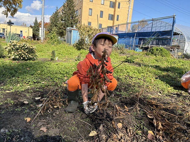収穫後は、年少さん・年長さん・卒園児・保護者の方々もお手伝いに参加してくれていましたよ🎵