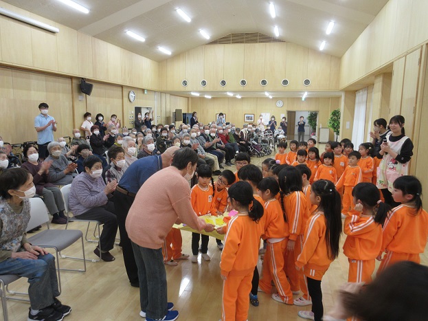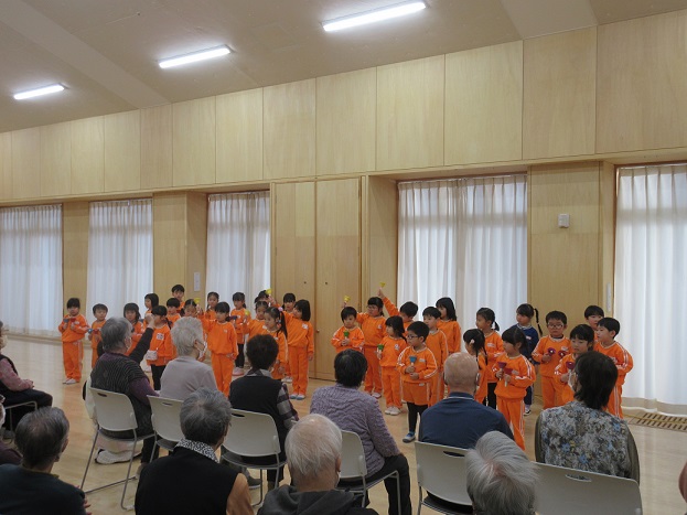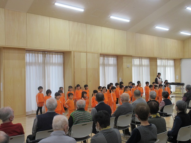 らんらんさんに着き、交流場所にはたくさんのおじいちゃん・おばあちゃん・職員の皆さんがおり、拍手で迎えていただきました✨