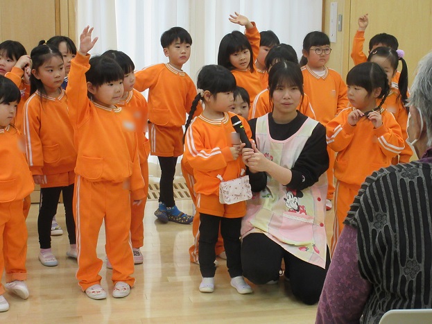 発表後は、利用者さんとのおしゃべりタイムという事で、質問コーナーがありました✨子ども達からは「好きな食べ物なんですか?」「いつもなにしていますか?」「好きな形はなんですか?」と上手に質問していましたよ☺