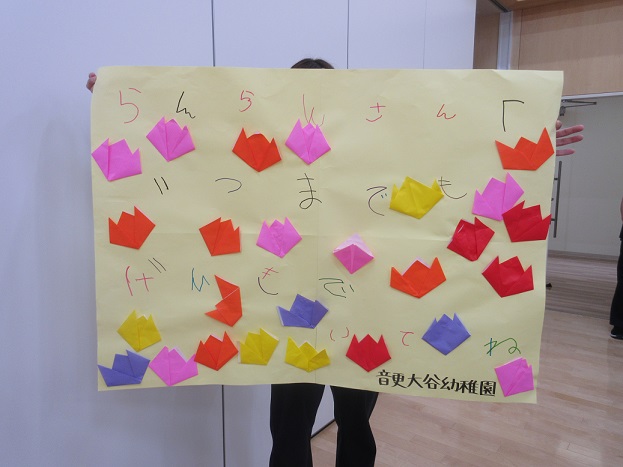 最後にみんなで作ったチューリップとメッセージ付きのポスターをプレゼントすることも出来ました👏