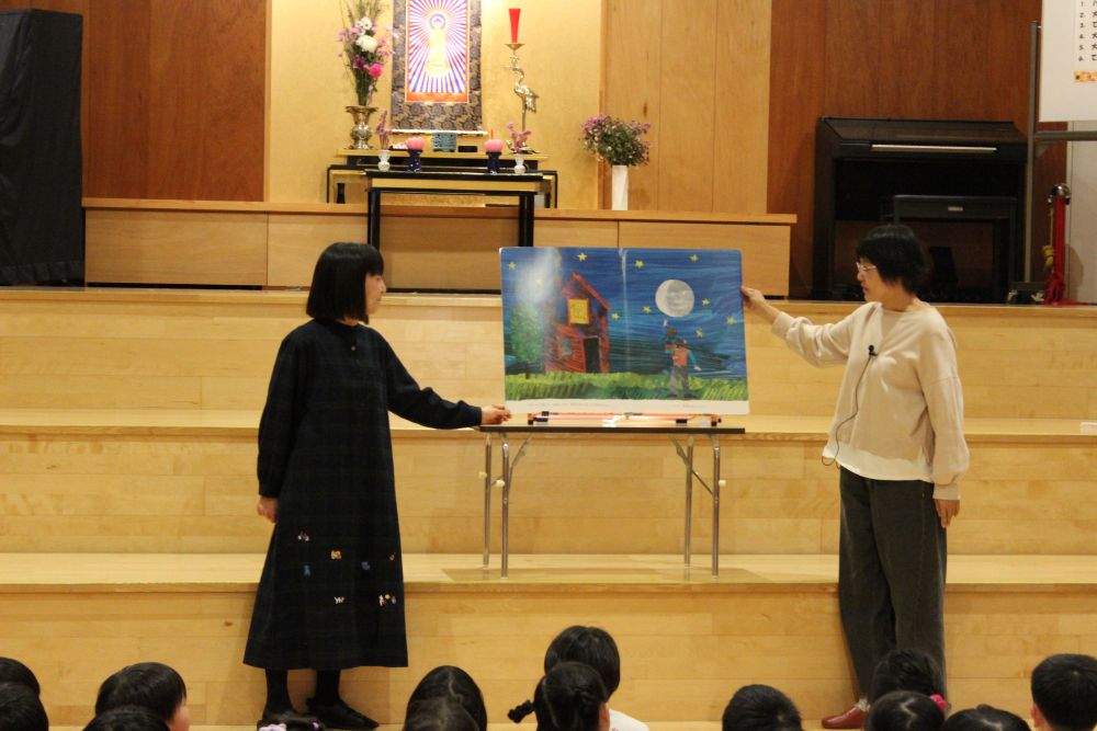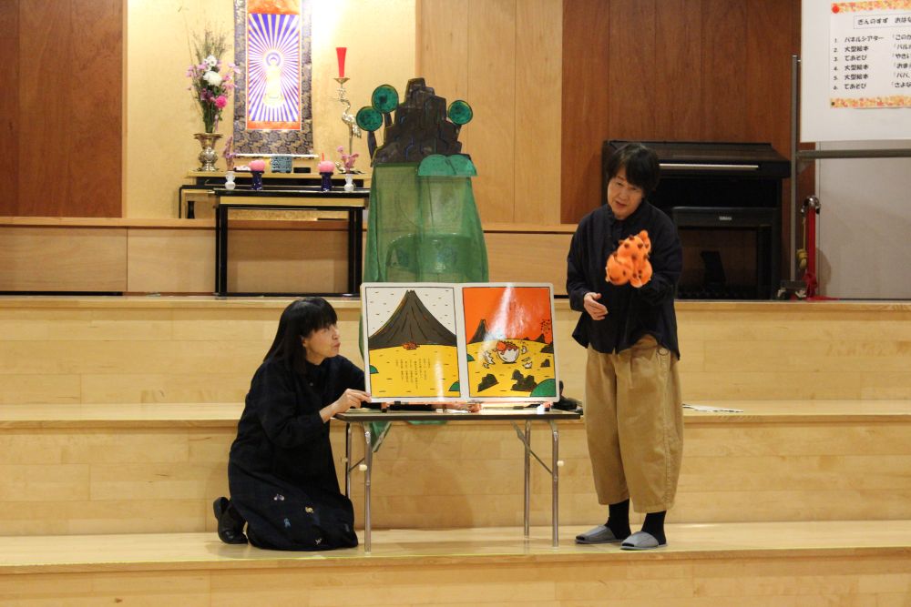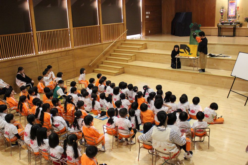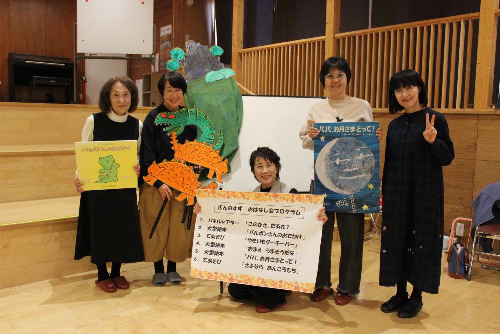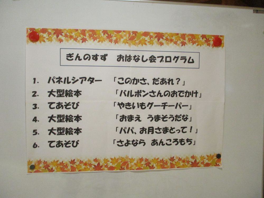 11月25日(火)に、町内の読み聞かせボランティアサークル「ぎんのすず」さんが来園し、ののさまホールで子どもたちに楽しいお話を聞かせてくれました♪
