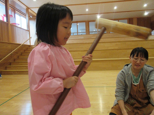 年中さんも1人5回ずつおもちをつきました!みんなで「1.2.3.4.5!!」と大きな声で数を数えました💪