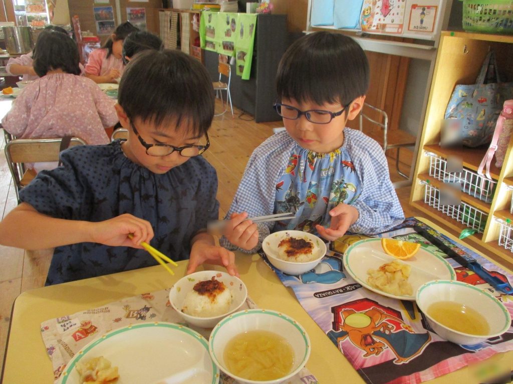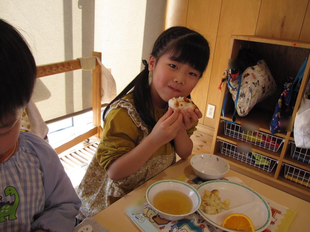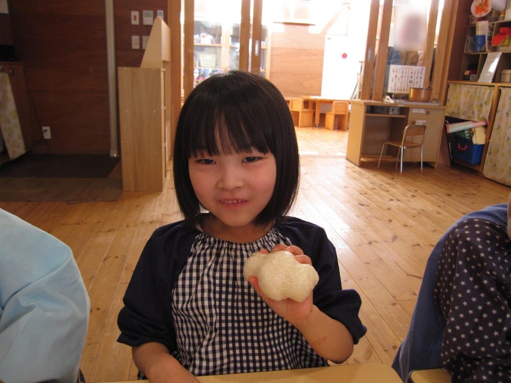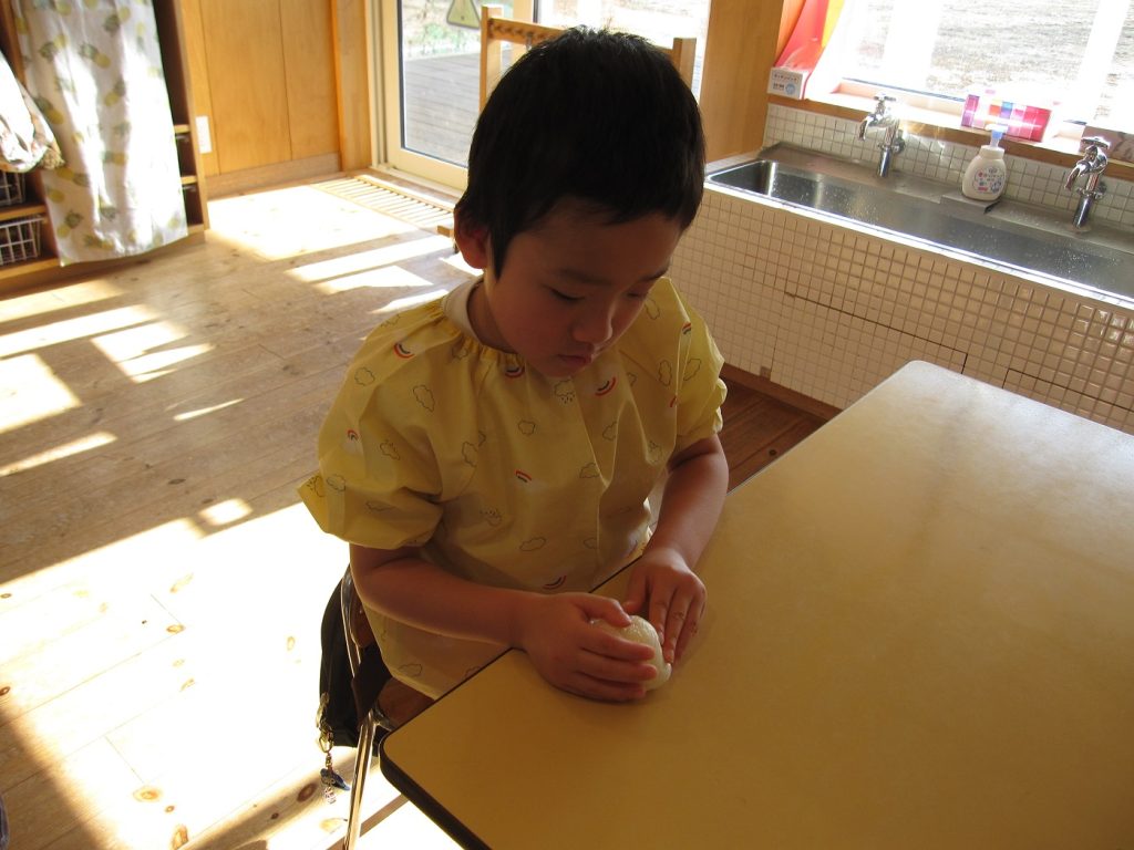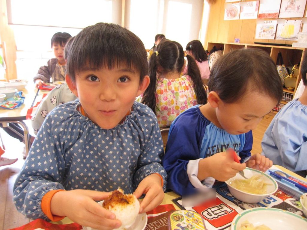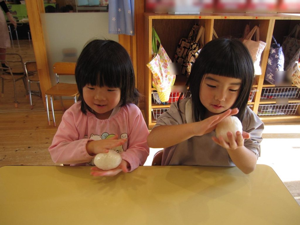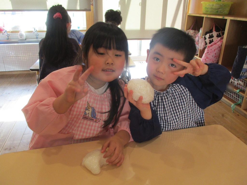 おにぎり作りは、お手の物✨な、年長さん!今回は、昨年みんなで作った、幼稚園の味噌を使って、味噌焼きおにぎりを作りましたよ~。