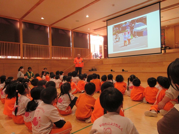 12月3日(水)、全園児がののさまホールに集まり、冬の交通安全教室を行いました。今回も「音更町役場 交通安全推進員の進藤さん」からを写真や動画を使用しながらお話をしていただきました😊
