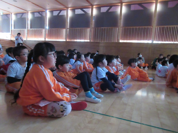 最後に、「ゆきダルマン」のDVDを見ながら冬に気を付ける交通ルールである、