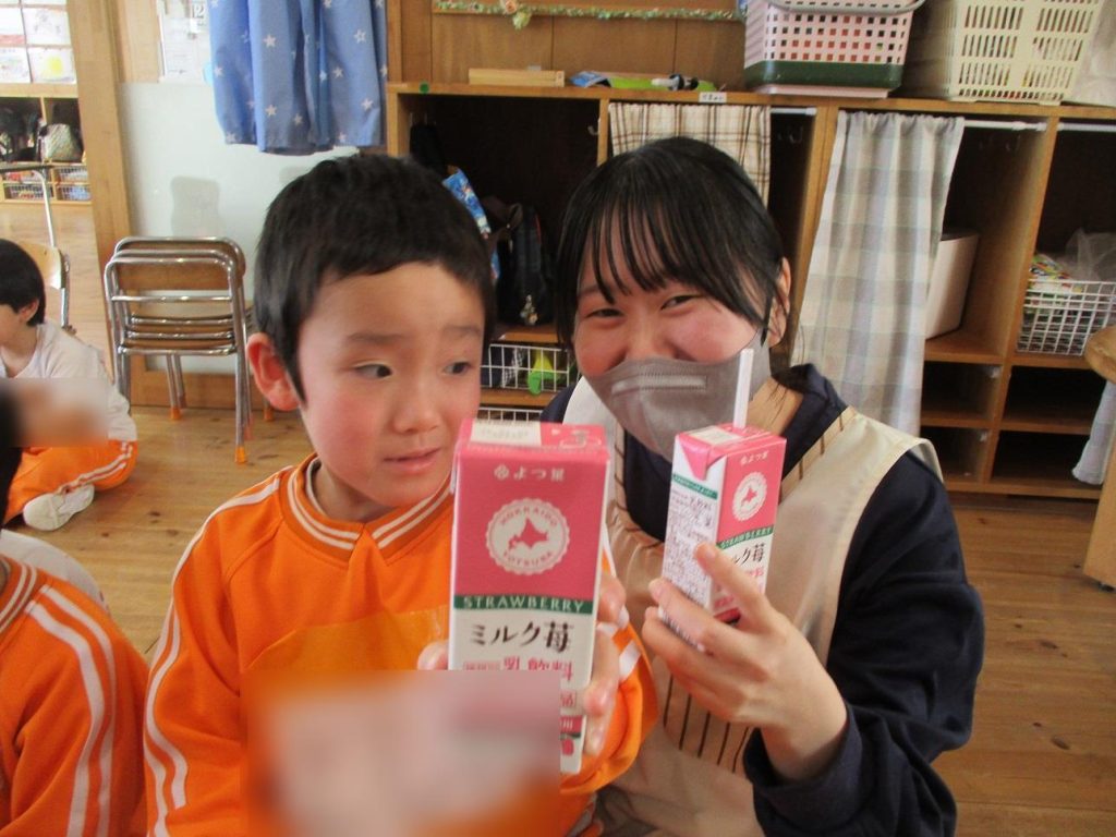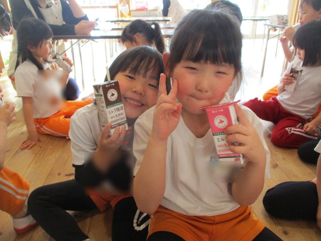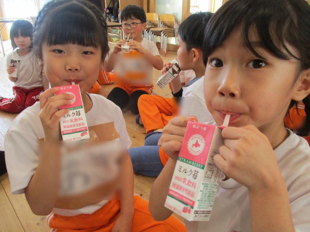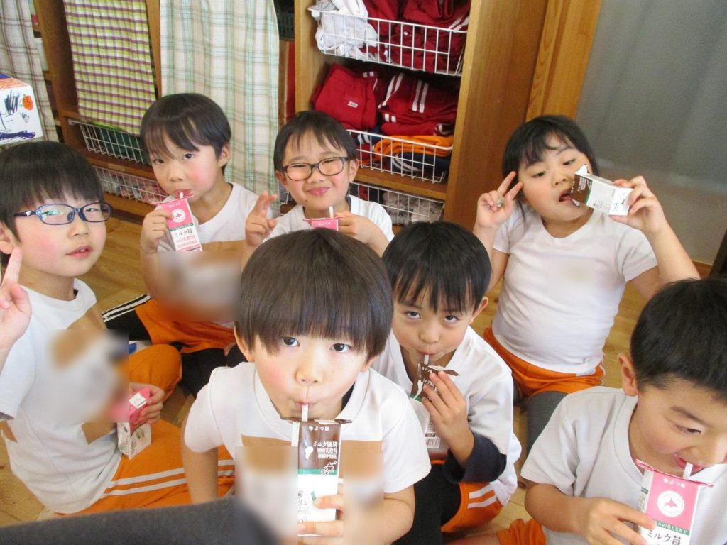 帰りの会の時間に年長さん全員でご褒美の牛乳を頂きました!