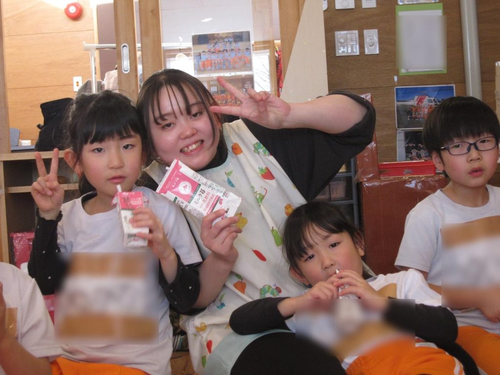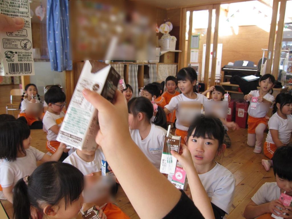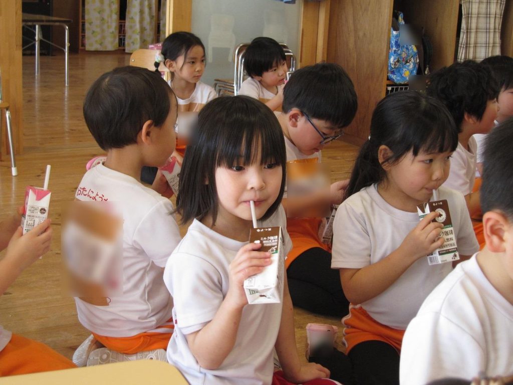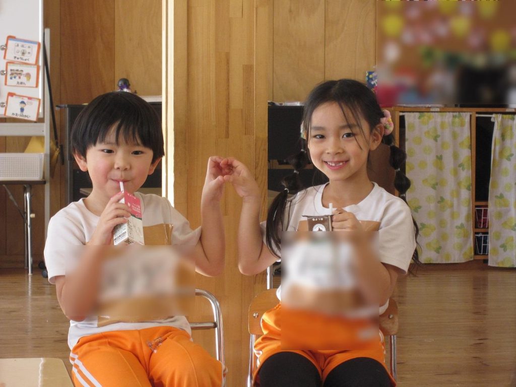 帰りの会の時間に年長さん全員でご褒美の牛乳を頂きました!