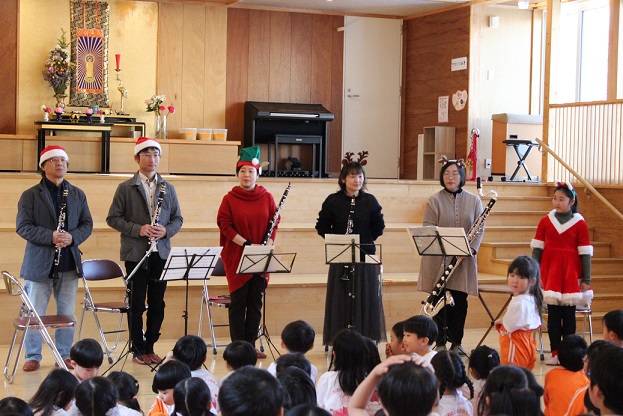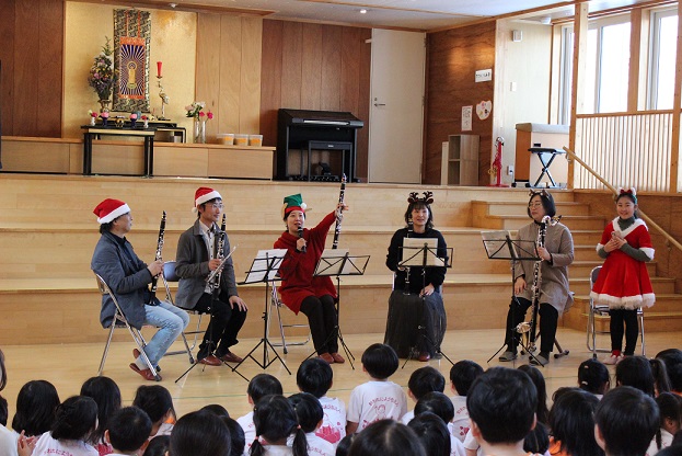 12月22日(月)、『カメラータ クラリネットアンサンブル』の皆さんをお招きし、幼稚園でクリスマスコンサートを行いました🎵