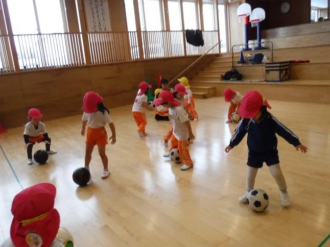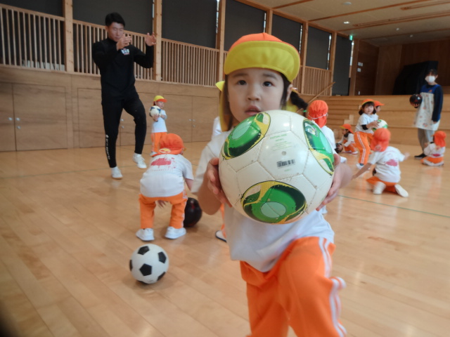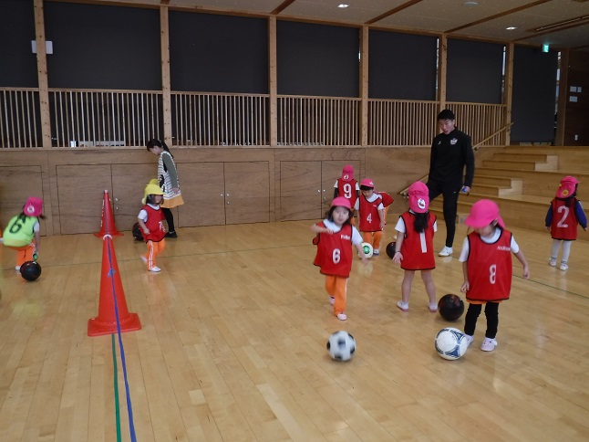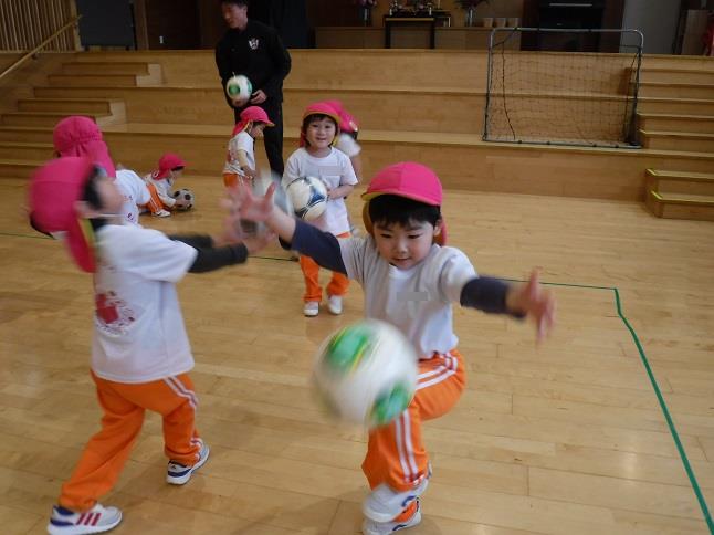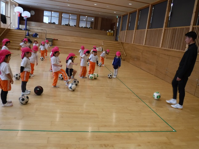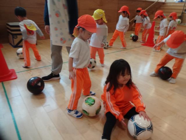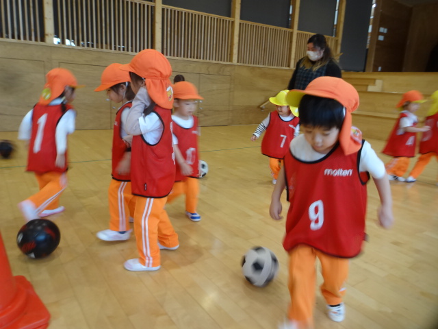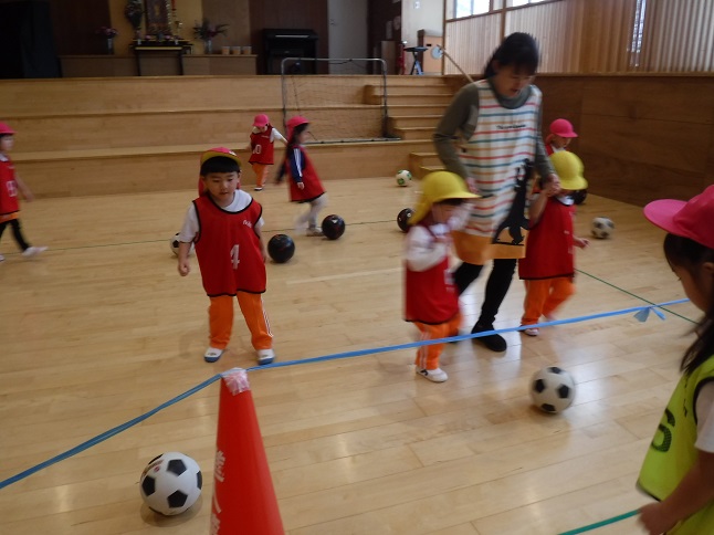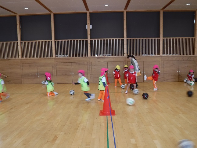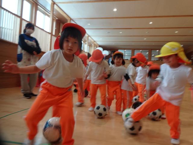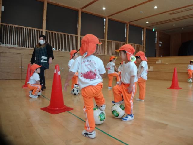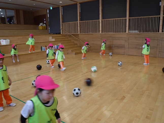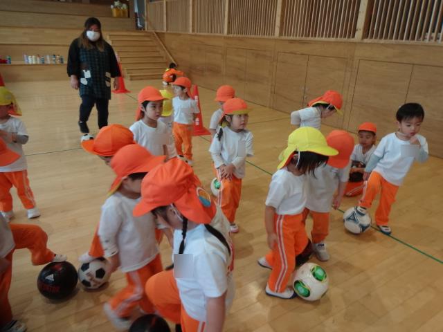 「たくさんボール蹴れた人―!」「はぁーい!!」と、とっても楽しめた子どもたちでした😁