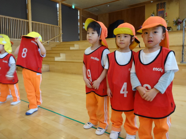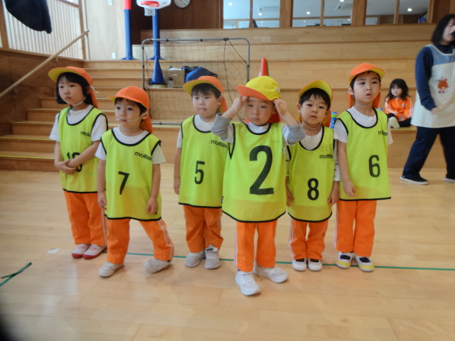 今度は、前回の運動教室でも行った黄色チームと赤チームの2チームに分かれて相手チームの陣地にたくさんボールを入れるゲーム⚽をしました!