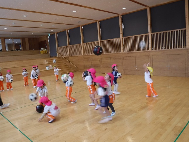 早速ボールを使用し、ウォーミングアップもかねて前回も行ったボールを上に投げてキャッチ!をしました🤲