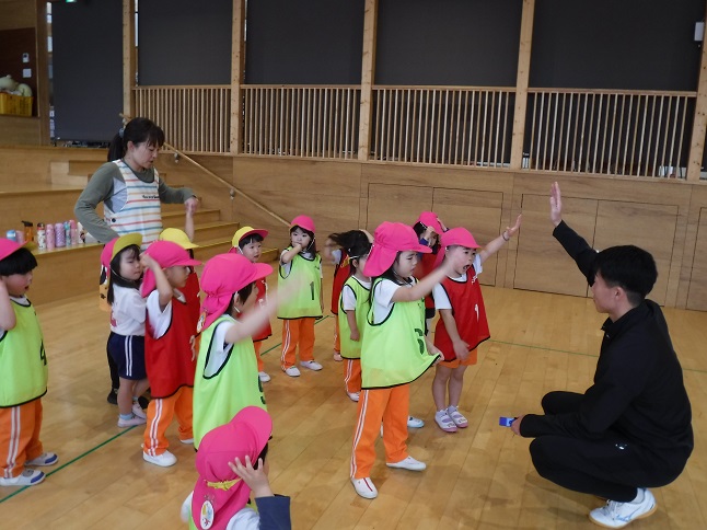 12月11日(木)に、”佐藤 友コーチ”に来園していただき、年少さん3回目の運動教室を行いました!