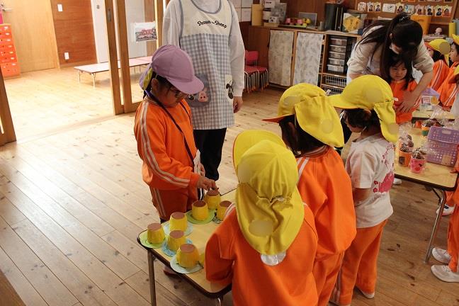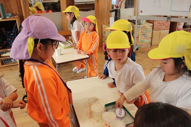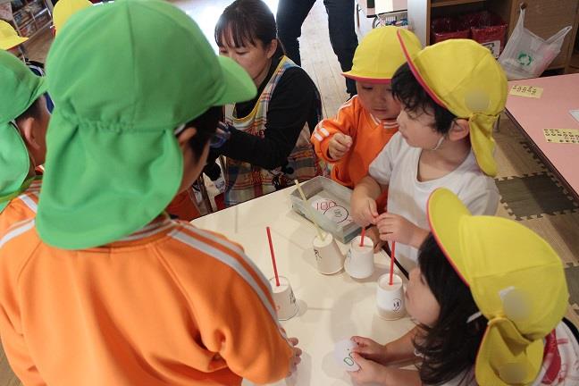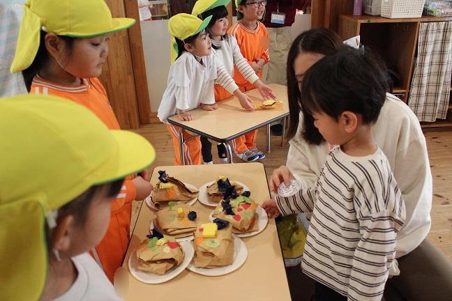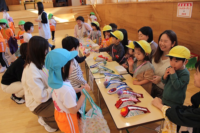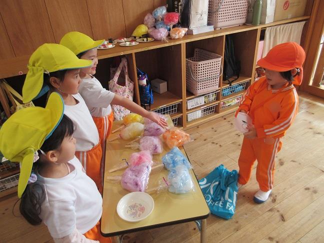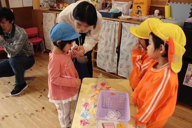 子ども達は上手に店員さんになりきり、お客さんでは楽しくお買い物をし、幼稚園のお友達とキッズさんのみんなでお店屋さんごっこをすることができました(*^-^*)