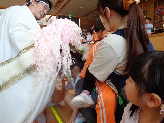 子ども達にとって難しい言葉ではありましたが、「賢くなれる!!」「健康になれる!!」なんて言いながら、進んで頭を差し出す子も居ましたよ😊