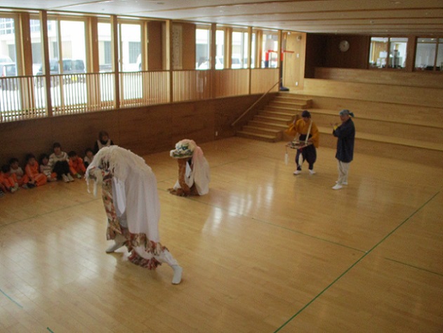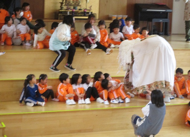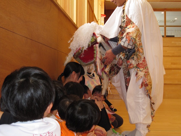 1月29日(木)、ののさまホールにて、新芸能集団 乱拍子さんによる獅子舞を全園児で観ることが出来ました。
