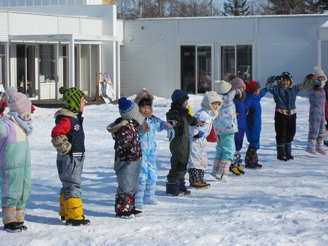 年少さん初めての雪中レクリエーション!体操は『まいにちそだてマッチョ』を踊りました💪