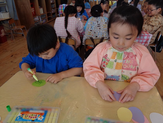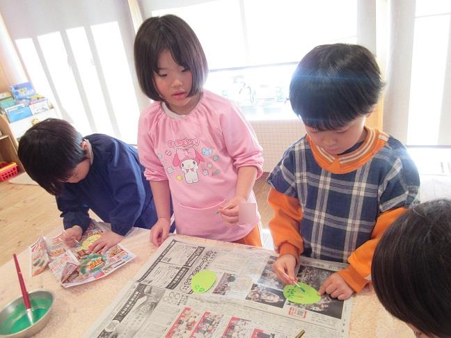 雪が解けてきて春へ少しずつ近づいている中、お部屋の中も春らしくする為に壁面製作を行いました。今回は「イースター🥚」をテーマにいろいろな道具や技法を使用しながら作成しましたよ👏