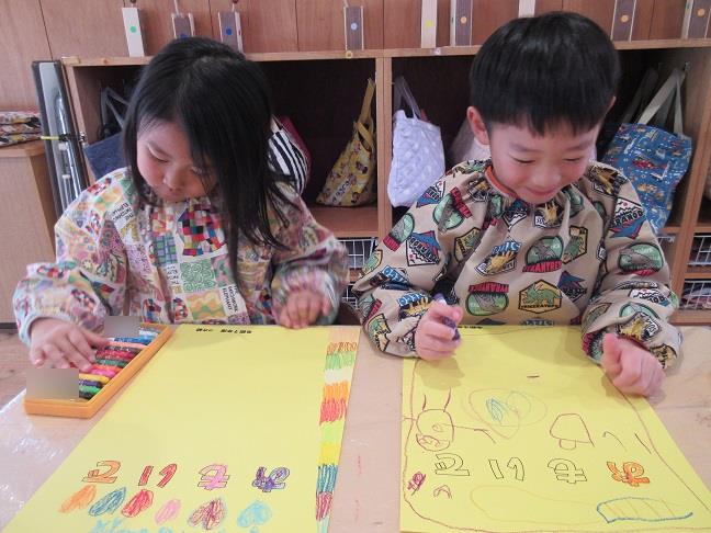 自由に絵を描いたり、運動会や発表会を思い出しながら描いた絵を今年も思い出帳としてまとめました✨こちらは、3月10日に持ち帰りますのでお楽しみにしていてくださいね🎵