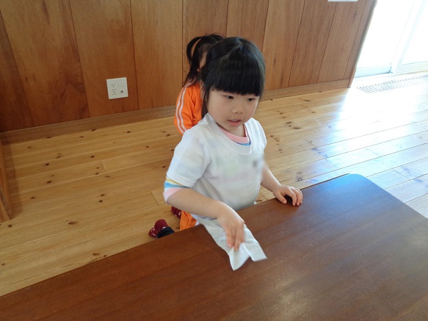 最後は、落ちているお菓子のゴミなどを拾ったり、机を拭いてくれたりとお片付けもとても上手でした☺♡