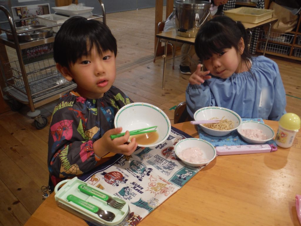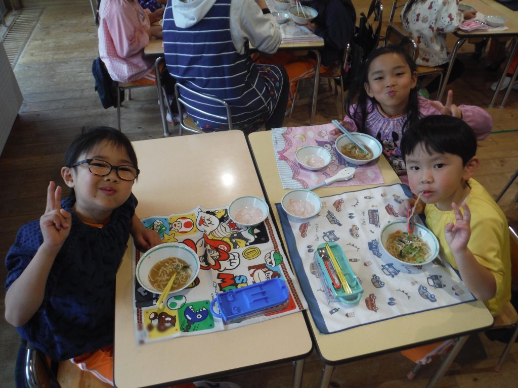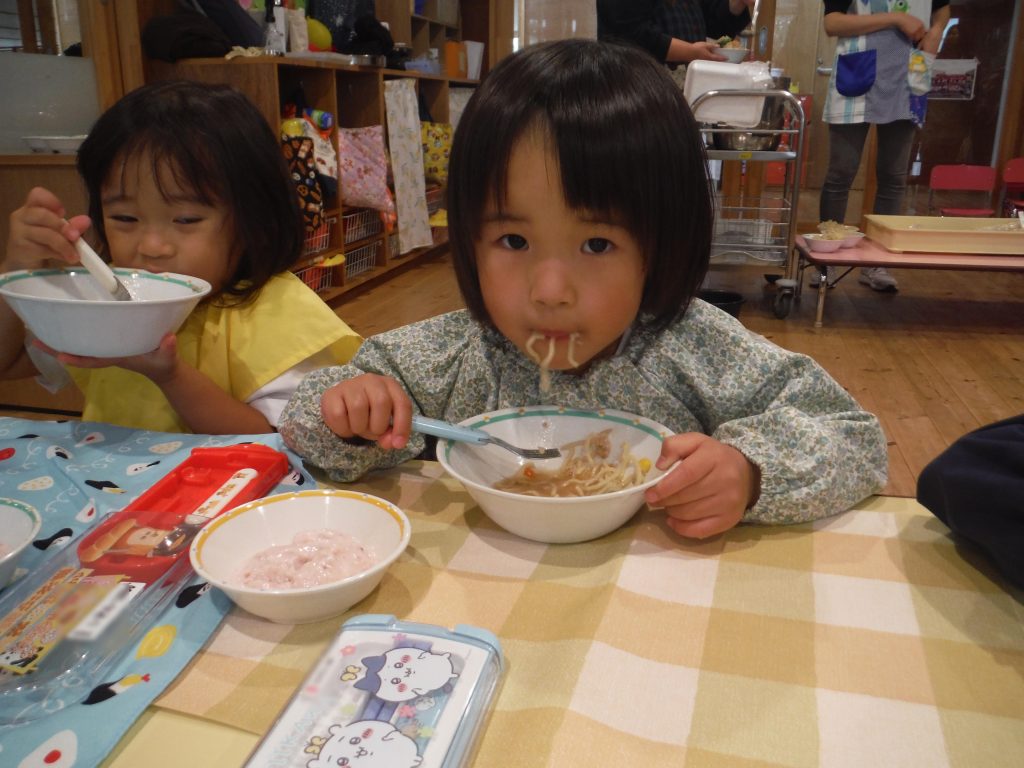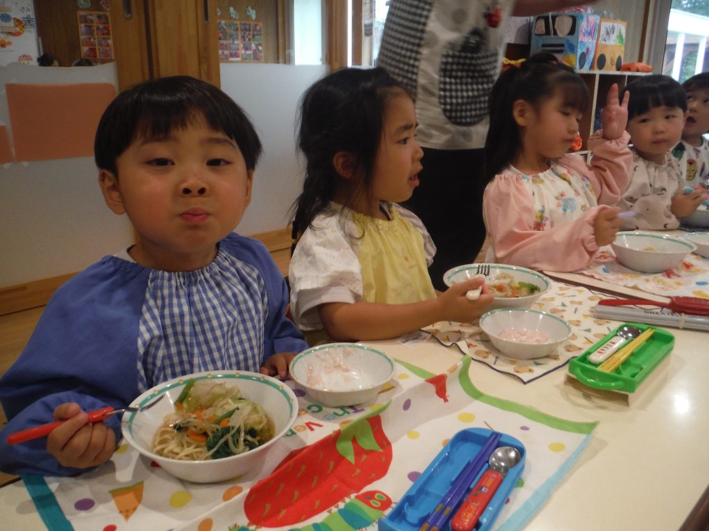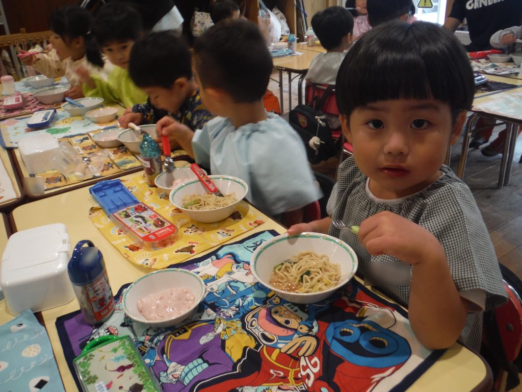 普段あまりお野菜を食べない子ども達も、この日は味噌ラーメンの空になった食缶を見せに来てくれて嬉しかったですよ!!また、今度は味噌汁も幼稚園の手作り味噌を使って作るので、楽しみにしていてください!そしてこれからも、給食をもりもり食べてくださいね!
