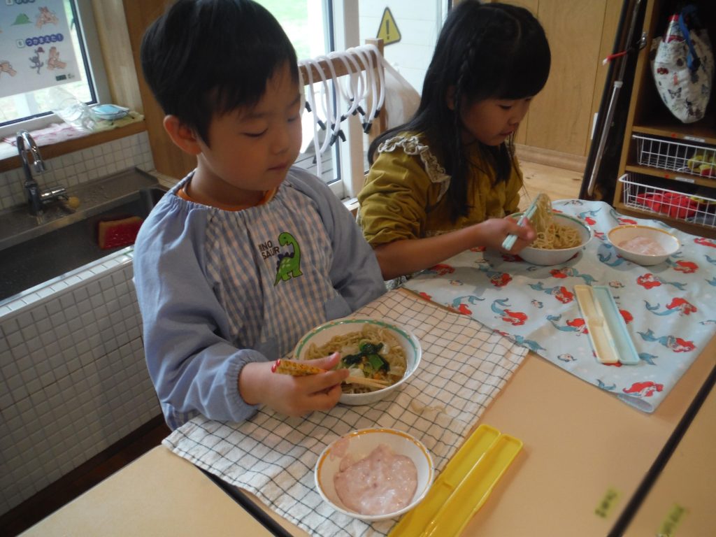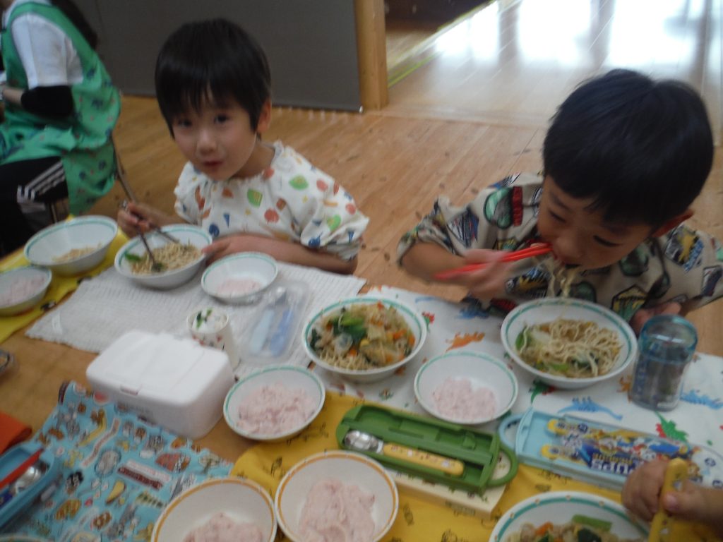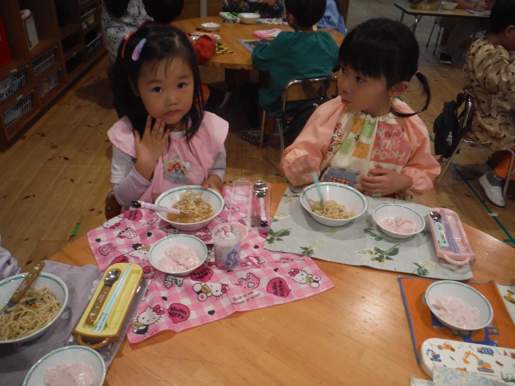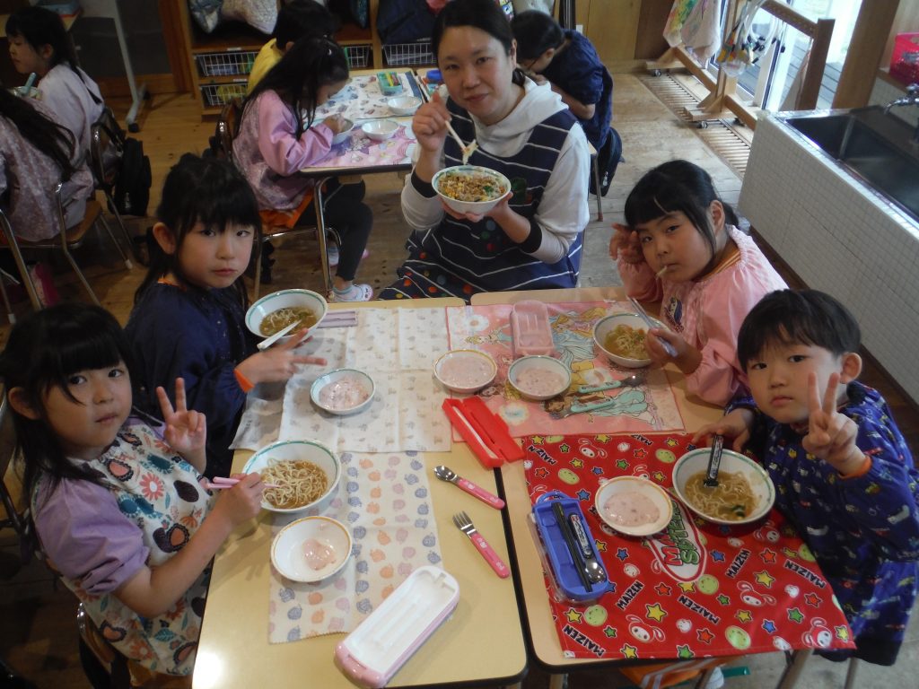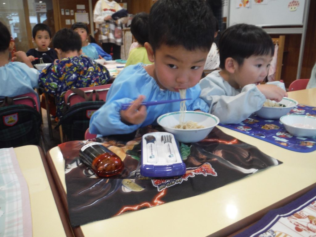 普段あまりお野菜を食べない子ども達も、この日は味噌ラーメンの空になった食缶を見せに来てくれて嬉しかったですよ!!また、今度は味噌汁も幼稚園の手作り味噌を使って作るので、楽しみにしていてください!そしてこれからも、給食をもりもり食べてくださいね!