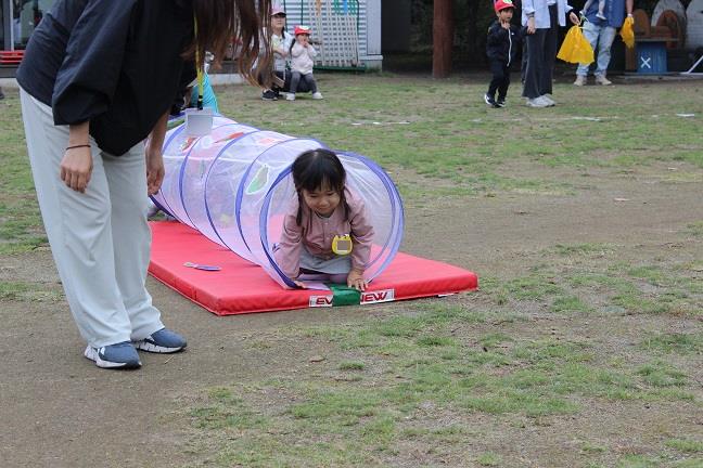 次はあおむしになったお友だちが、ちょうちょになってゴールする障害物競走です。