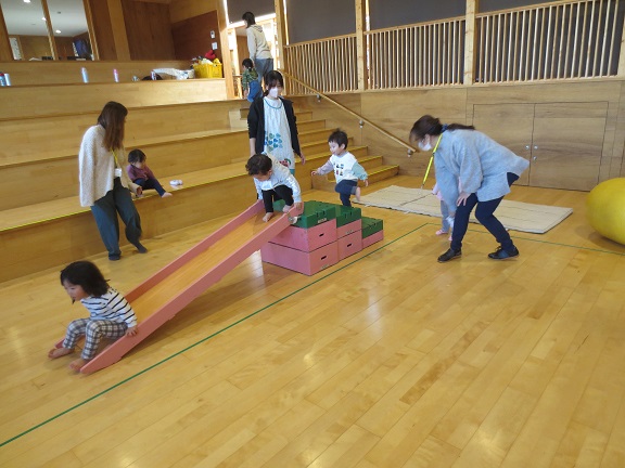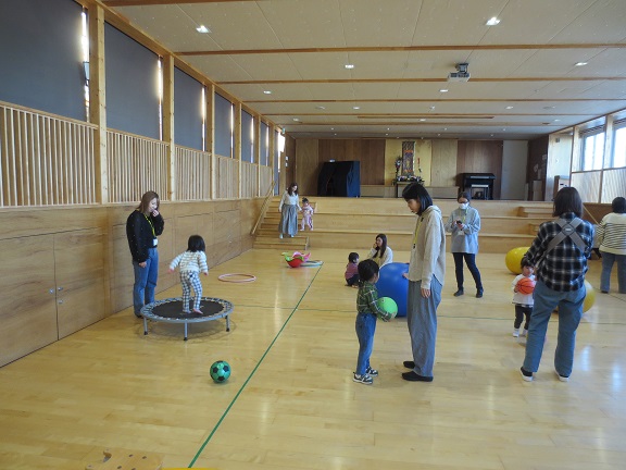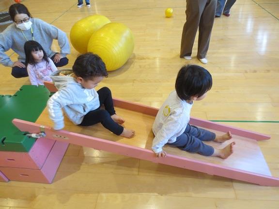 活動前の自由遊びも、ののさまホールで思いっきり遊びました。