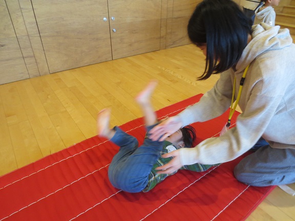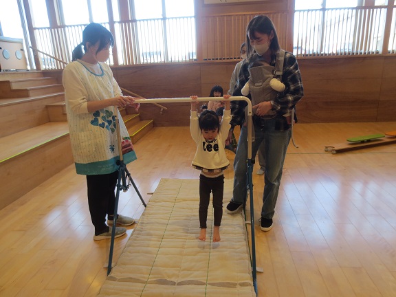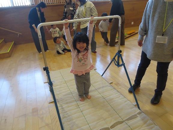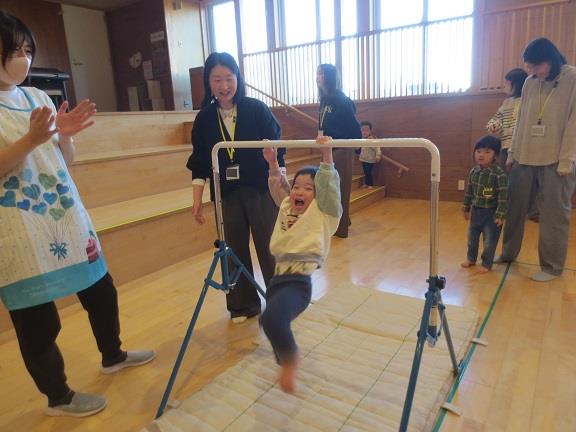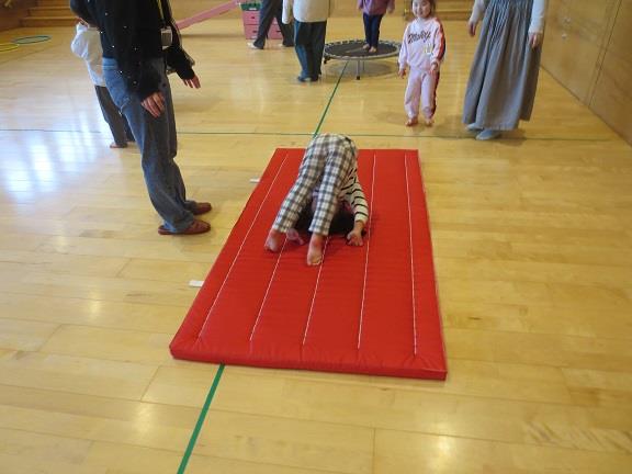 身体を動かすことが大好きなキッズさん。ぶら下がるのが上手だったり、前転に一生懸命挑戦したり、普段中々見られない姿を見ることができました。