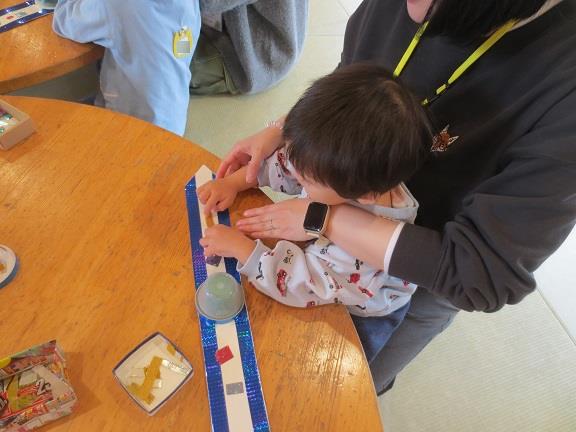 12月に行われたお店屋さんごっこで売る商品作りをしました。