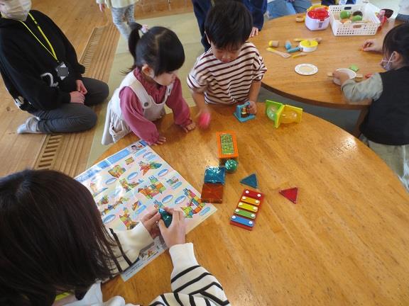 サンタさんには『ピタゴラス』などのおもちゃをもらい、自由遊びの時間に遊ぶことができました☺