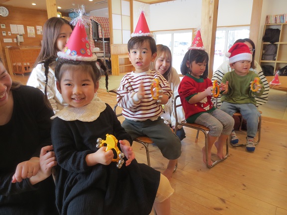 そして最後には好きな楽器を選んで、お母さん達の前で♪あわてんぼうのサンタクロースを演奏して終わりました。