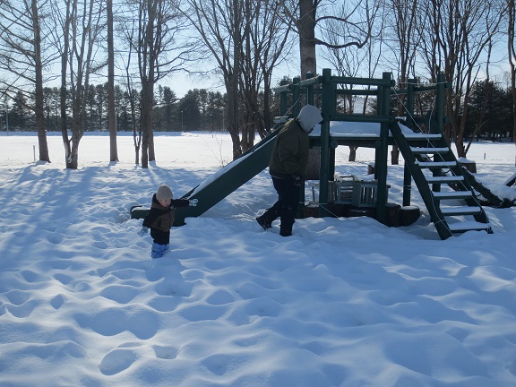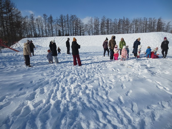 キッズガーデンも3学期が始まり、初回の1月14日は幼稚園園庭で雪遊びをしました。